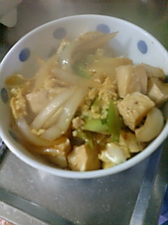 今日は豆腐の親子丼もどき!