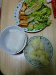豆腐の照り焼き。どう見てもレタスが溢れてますがキニシナイ。